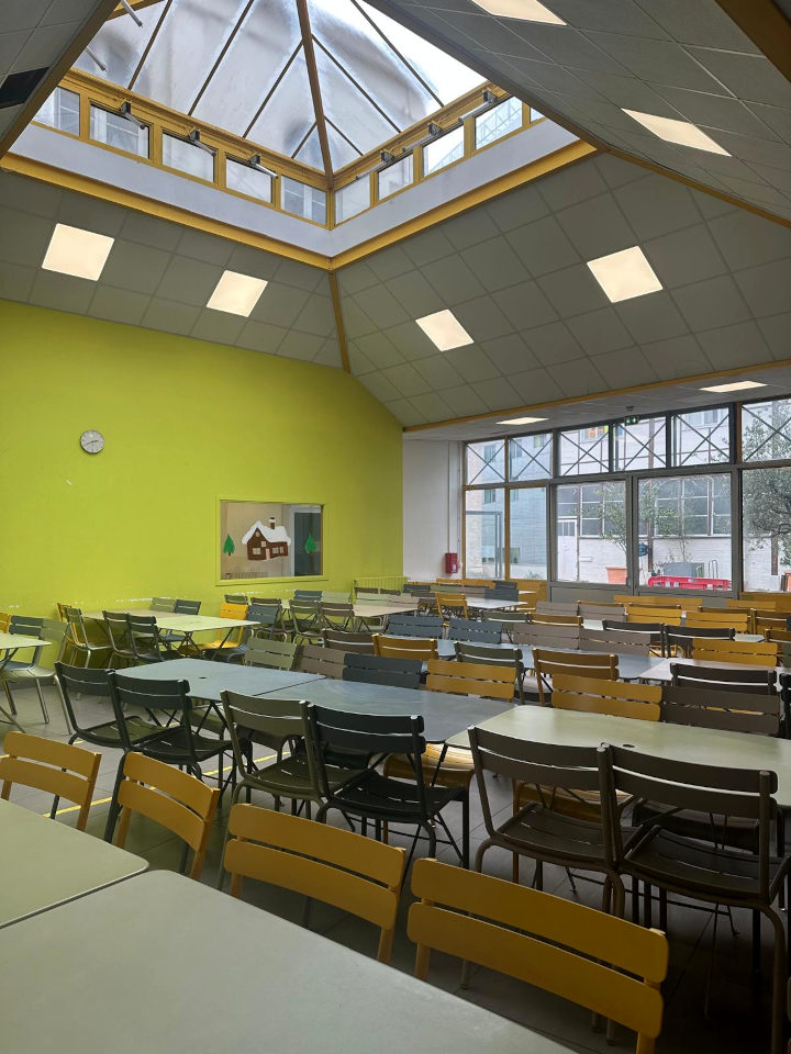 Les élèves se présentent au réfectoire en commençant par les classes de maternelles, qui déjeunent plus tôt et dans des salles séparées. Puis c’est au tour des primaires : ULIS => CP => CE1 => CE2 => CM1 => CM2 puis les collégiens.